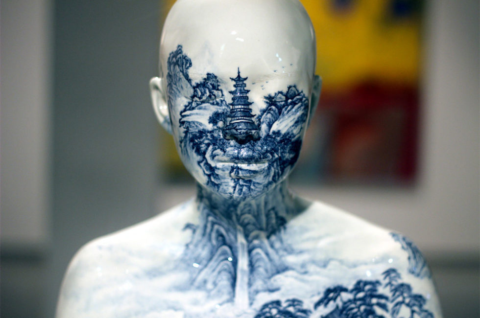 The sculptures by Ah Xian establish a series of multilayered oppositions. The tension between the sculptural form of the bust and the painted surface designs. The artist likens to the oppositions of West and East.
